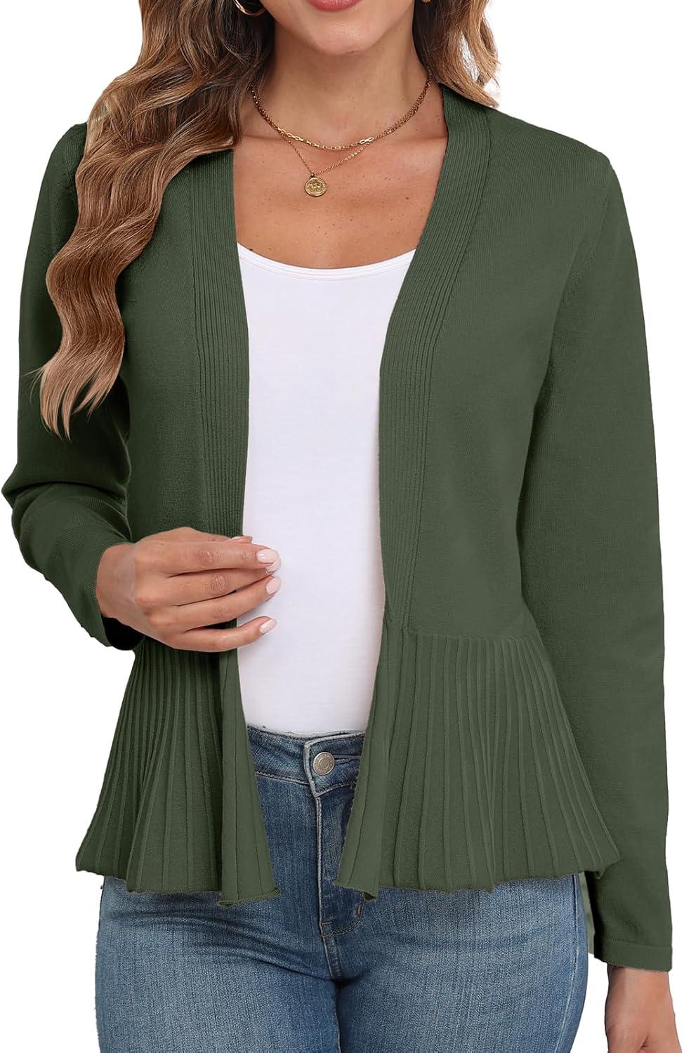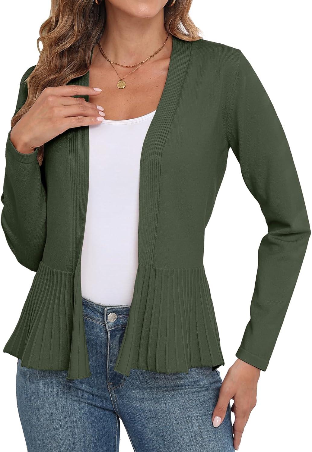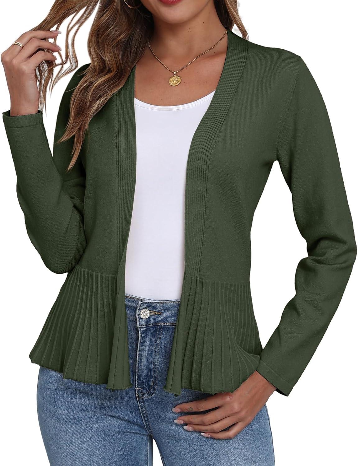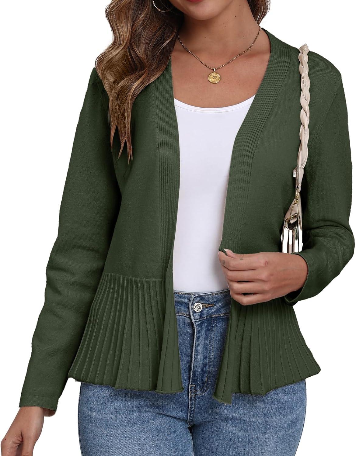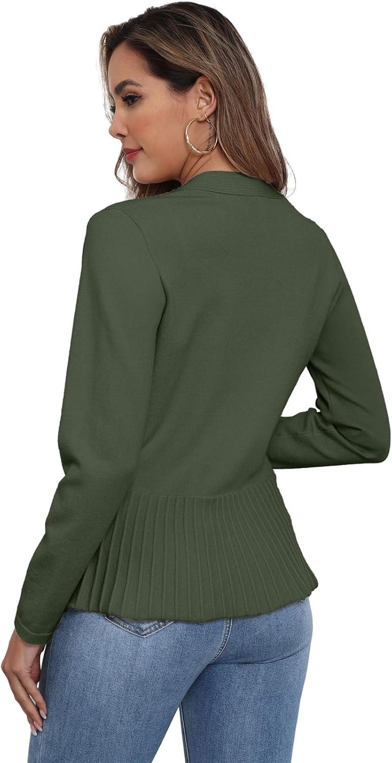 GRECERELLE Women Lightweight Casual Long Sleeves Cropped Cardigan Open Front Peplum Knit Sweater Outwear(Army Green)